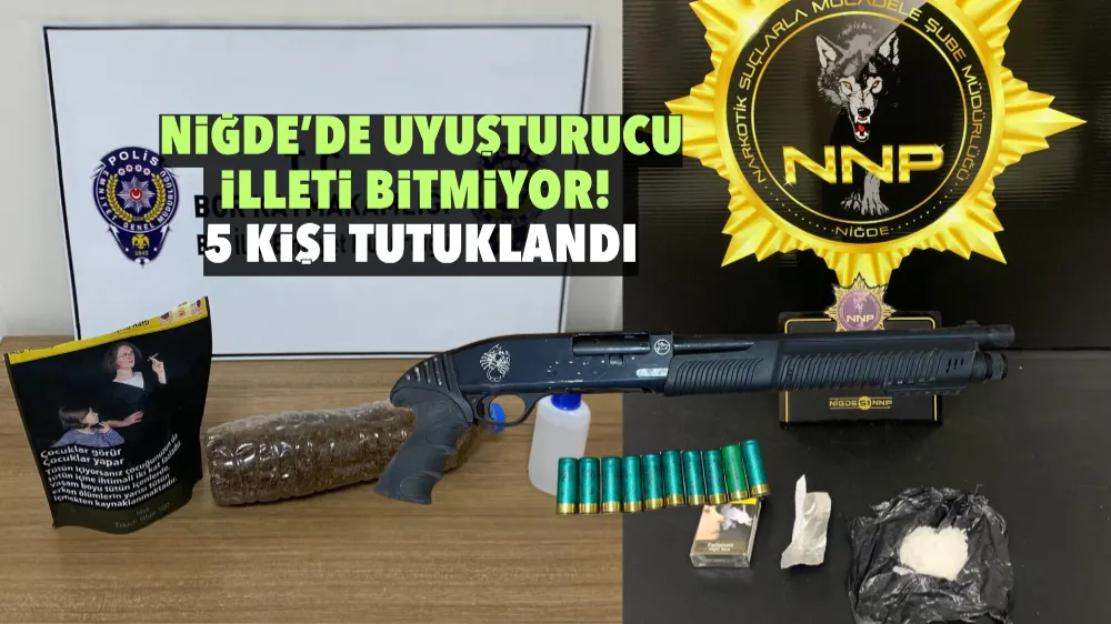 Niğde Cumhuriyet Başsavcılığı koordinesinde Niğde İl Emniyet Müdürlüğü Narkotik Suçlarla Mücadele şube Müdürlüğü ve Bor İlçe Emniyet Müdürlüğü ekiplerince yapılan operasyonlarda 8 şüpheli yakalandı. Yakalanan 8 şüpheliden 3’ü alınan ifadelerinin ardından serbest kalırken, 5 şüpheli çıkarıldıkları mahkemece tutuklanarak cezaevine gönderildi.