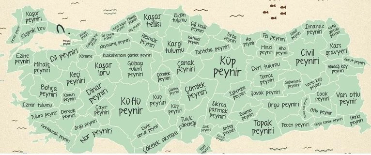 Haritada Erzurum’da çivil peyniri çok seviliyor, Bursa’da dil peyniri tercih ediliyor. İzmir’de ise tulum peyniri meşhur iken, Ankara’da Gölbaşı tulum peyniri ile Kızılcahamam çömlek peyniri seviliyor. Antalya’da ise lor peyniri severek tüketiliyor.