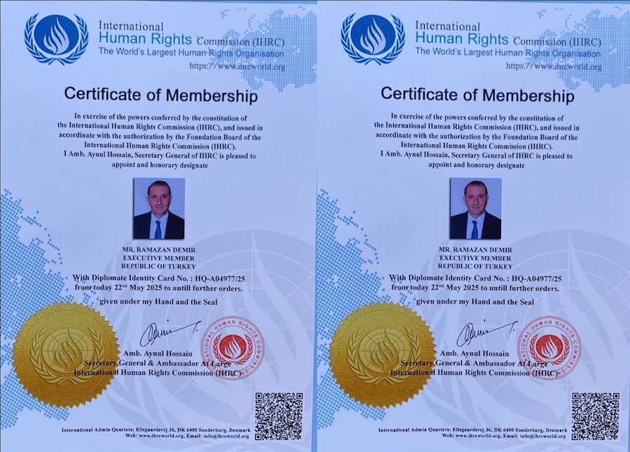 Dünyanın en büyük insan hakları örgütü olan, İnsan Hakları Komisyon’a (IHRC), aslen Niğde Hacıabdullah Kasabası’ndan olan ve Bursa’nın başarılı iş insanı ve Tüm Niğde Dernekleri Konfederasyonu Genel Başkan Yardımcısı Ramazan Demir atandı. Ramazan Demir’e üyelik belgesi takdim edildi.
