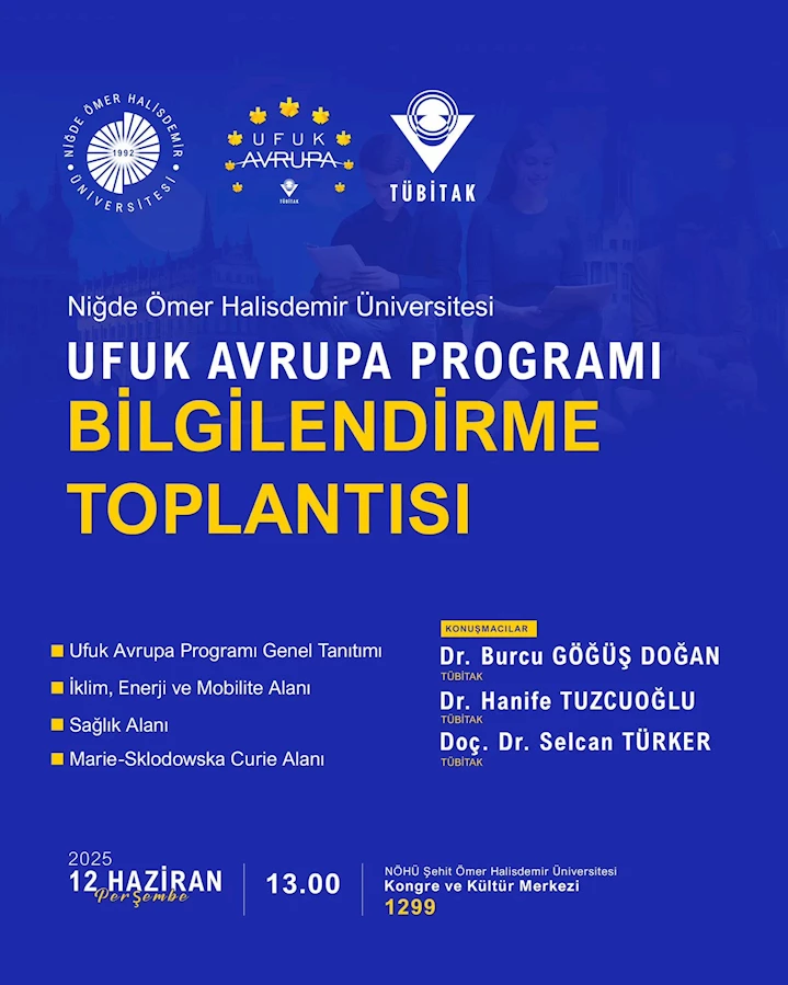 Toplantıda, Ufuk Avrupa Programı'nın genel çerçevesi ile “İklim, Enerji ve Mobilite”, “Sağlık” ve “Marie Skłodowska-Curie” alanlarına ilişkin detaylı sunumlar katılımcılara aktarılacak. Program, araştırmacılar ve akademisyenlerin Avrupa fonlarına erişimini kolaylaştırmayı ve bilimsel projelerde etkin rol almalarını teşvik etmeyi amaçlıyor.