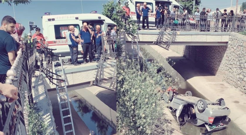 OTOMOBİL KANALA UÇTU: 3 YARALI