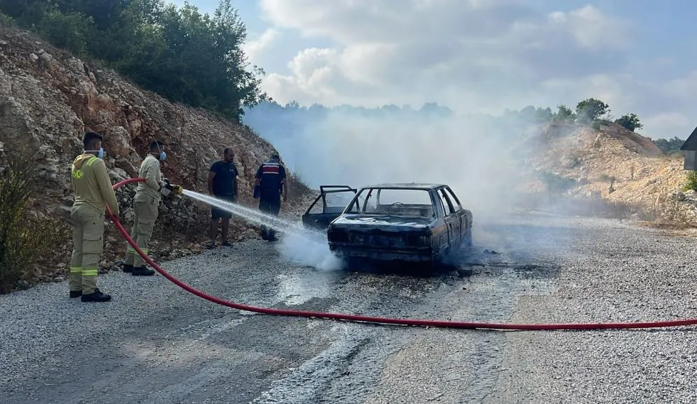 Mersin'in Erdemli ilçesinde seyir halindeki araç alev alev yandı. Orman ekiplerinin müdahalesiyle araçtaki yangın söndürüldü.