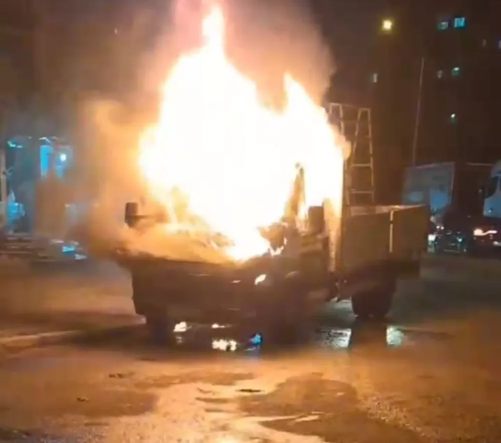 Adana'da gece park halindeki kamyonet yanarak kullanılamaz hale geldi.