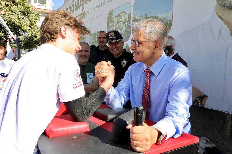 Vali Çelik, gençlerle birlikte bilek güreşi yaptı, basketbol oynadı. Etkin katılımın önemine vurgu yapan Vali Çelik, “Bu mücadelede söz kadar eylem de önemlidir. Gençlerimize örnek olmalıyız” ifadelerini kullandı.