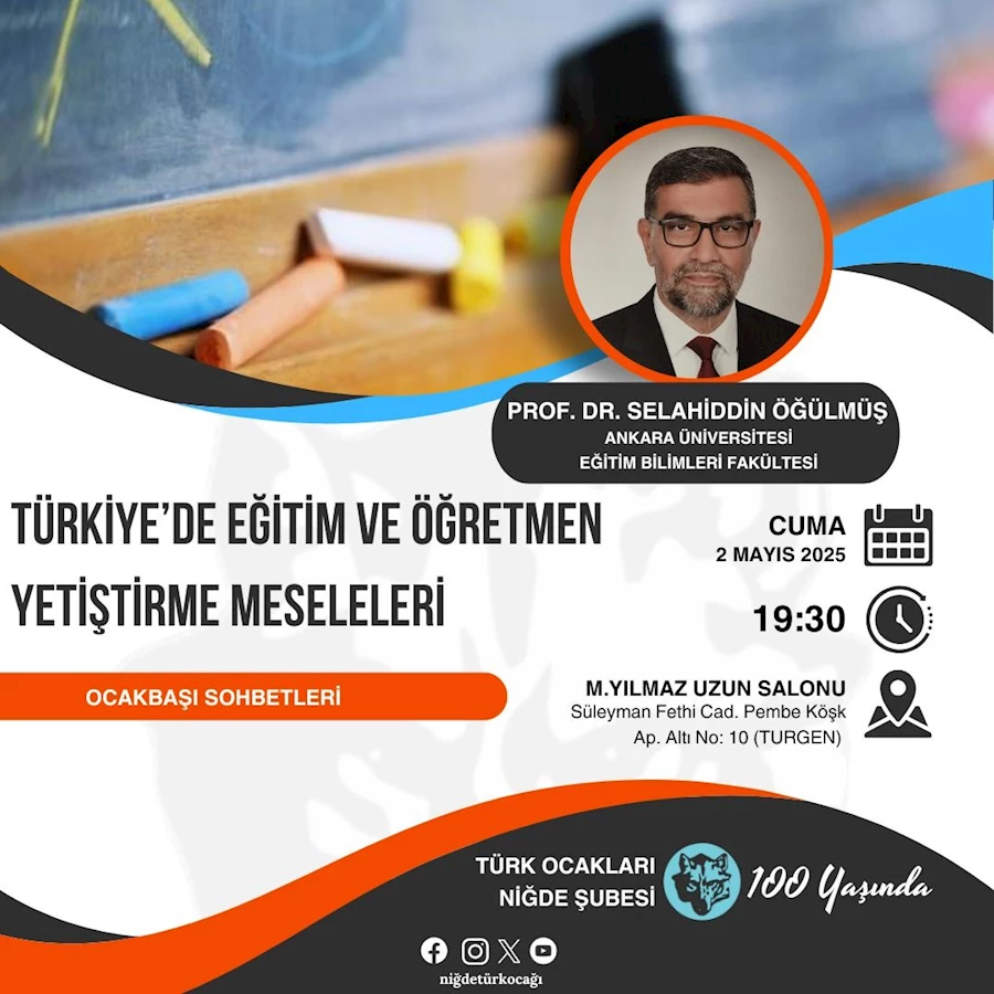 Alanında yetkin bir isim olan Prof. Dr. Öğülmüş, "Türkiye'de eğitim ve öğretmen yetiştirme meseleleri" başlığı altında önemli değerlendirmelerde bulunacak. Sohbetin, eğitim camiası ve konuya ilgi duyan Niğdeliler için ufuk açıcı bir platform olması bekleniyor.