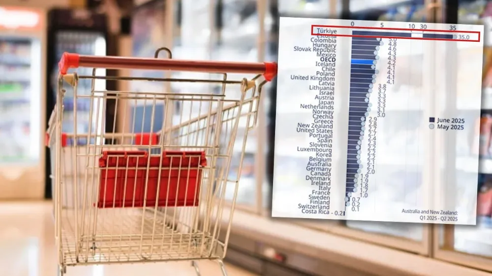 OECD verilerine göre Türkiye, yüzde 35 ile en yüksek enflasyon oranını kaydetmeye devam etti; diğer hiçbir OECD ülkesinde enflasyon oranı yüzde 5’in üzerine çıkmadı. Haziran 2025 itibarıyla OECD genelinde ortalama enflasyon yüzde 4,2’ye yükselirken, G7 ülkelerinde bu oran yüzde 2,6 oldu. Türkiye’de gıda fiyatları yüzde 30,2, enerji fiyatları yüzde 40,6 arttı. Euro Bölgesi’nde ise enflasyon yüzde 2’de sabit kaldı.