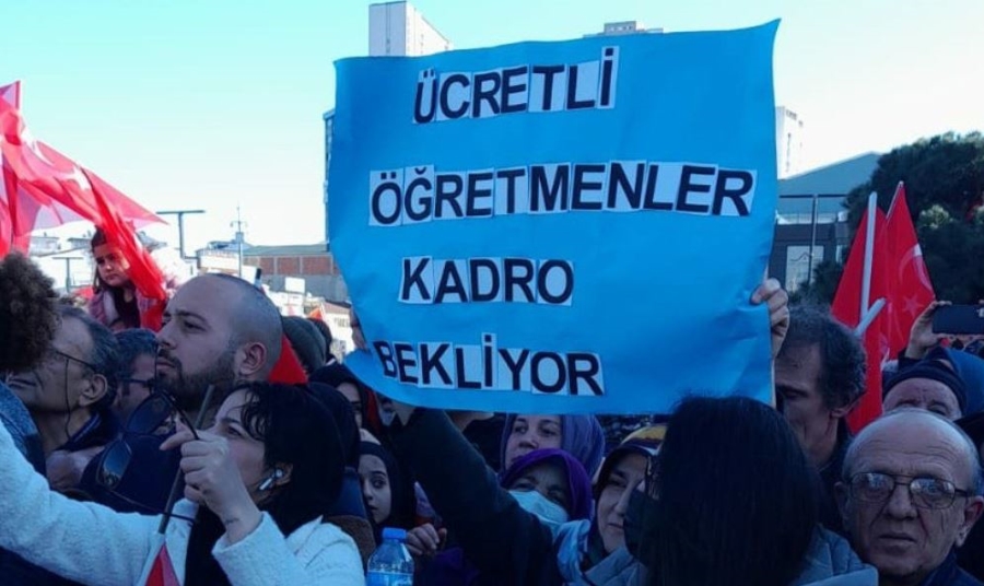 Üç yıl ve üzeri hizmeti olan ücretli öğretmenlere daha önce dershane öğretmenlerine tanınan hakkın bir benzerinin tanınarak kadroya alınmasını talep ediyoruz."