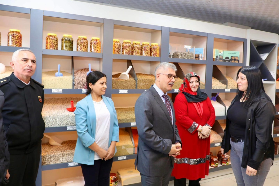 Ziyarette işletme sahibi Özlem Zeynep Sarı ile bir araya gelen Vali Çelik, işletmede yürütülen çalışmalar, üretim süreci ve yöresel ürünlerin tanıtımı hakkında bilgi aldı.