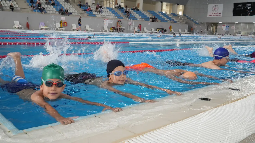 Gençlik ve Spor İl Müdürlüğü'ne bağlı Olimpik Yüzme Havuzunda sürdürülen eğitimler; profesyonel antrenörler eşliğinde, yaş gruplarına göre ücretsiz olarak veriliyor.